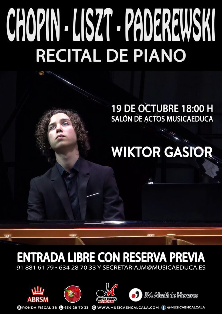 El próximo 19 de octubre a las 18:00 en el Salón de Actos de la escuela, nuestro profesor Wiktor Gasior ofrecerá un recital de piano.