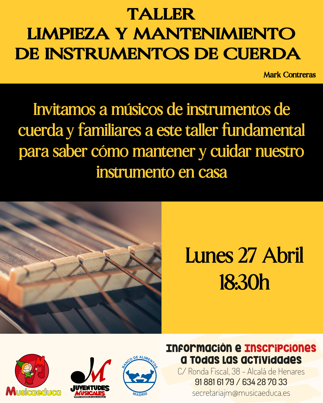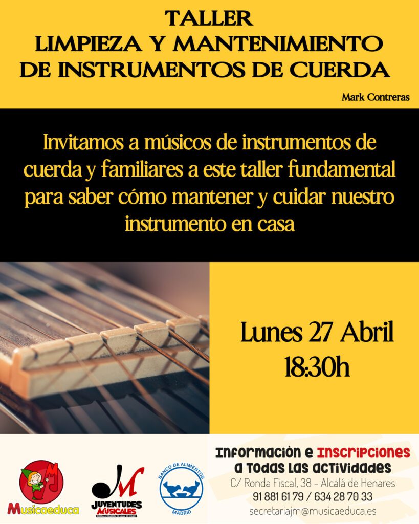 - TALLER “LIMPIEZA Y MANTENIMIENTO DE INSTRUMENTOS DE CUERDA” (músicos y familiares). Mark Contreras